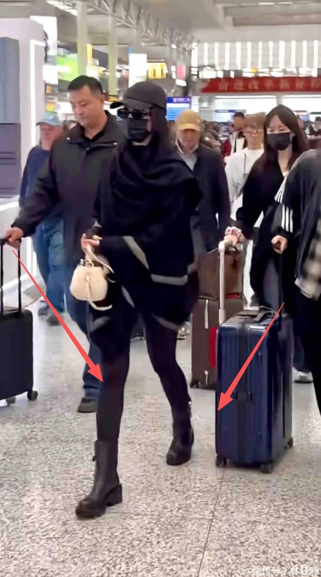 22. 黑色加厚羽绒服拉至下巴,口罩墨镜齐备,仅露出一双灵动大眼,但熟悉她的粉丝仍迅速认出——那双会说话的眼睛太具标志性。