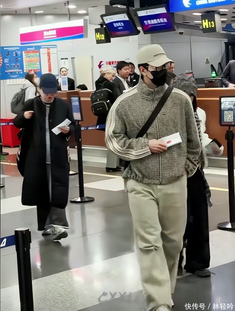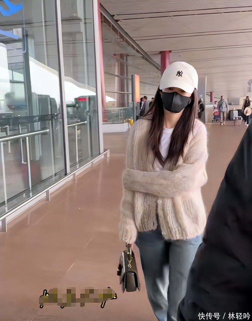 24. 安检时短暂摘下帽子,头发略显凌乱,但肤质细腻光滑,素颜状态下依然扛得住近距离拍摄。
