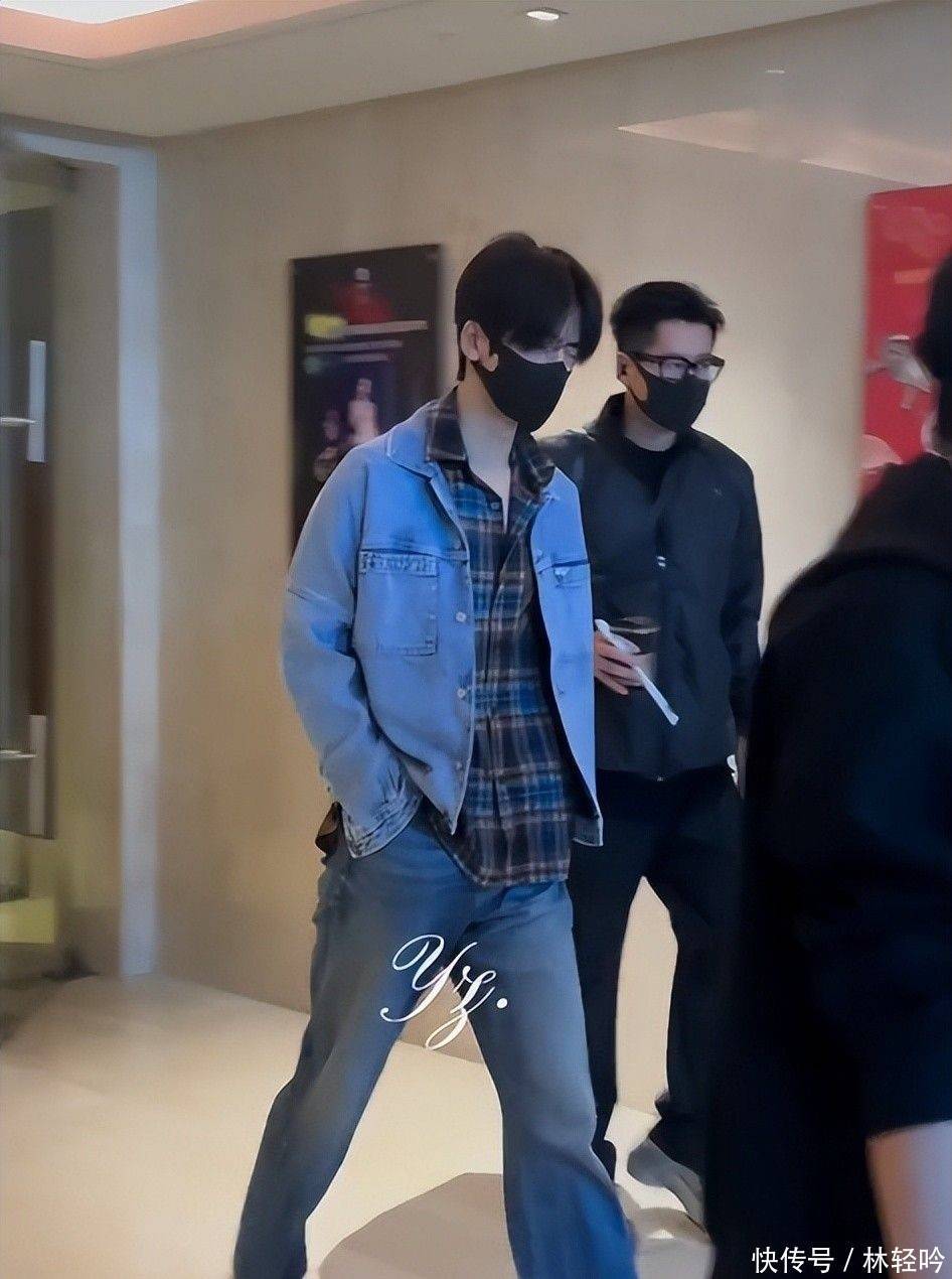 11. 粉丝镜头记录下他身穿蓝白格子衬衫,外搭浅色牛仔夹克,下身是简约牛仔裤配白色运动鞋,整体造型干净利落,宛如校园剧男主角走出屏幕。